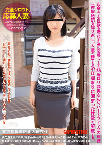 完全シロウト、応募人妻。 お金よりも性欲を満たす為に応募してきた36歳顔奥さんは、ハードファックの連続に痙攣絶頂を繰り返し、大量の精子を浴び溜まりに溜まった性欲を開放する。 東京都豊島区北大塚在住/長門満里奈/36歳/専業主婦/結婚2年目/無し